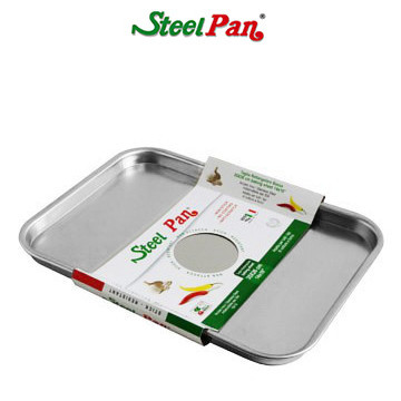 Forma do pieczenia - płytka brytfanna marki Steel Pan o rozmiarach 35x26cm i wysokości 2,6cm, wykonana z nierdzewnej stali kwasoodpornej o unikatowej i chronionej patentem powierzchni nieprzywierającej - Tekstura 3D. Forma wykonana jest z grubej blachy i posiada wzmacniający rant z okrągło formowanym brzegiem, co pozwala na wieloletnie użytkowanie, bez ryzyka zniszczenia. Brak na powierzchni formy kontrowersyjnych powłok chemicznych i cynowanych, ulegających z czasem szybkiej destrukcji, czyni nasze pieczenie zdrowym i bezpiecznym. Brytfanna jest także funkcjonalna przy suszeniu warzyw, owoców i grzybów. Unikatowa tekstura 3D chroni pieczone potrawy przed przywieraniem do formy - Patent na Europę: Brevetto Europeo n.98830713.8. Forma nadaje się więc do pieczenia w domu i każdej gastronomii, jest idealna do ciast, ciastek, zapiekanek, pizzy i placków wszelkiego typu.