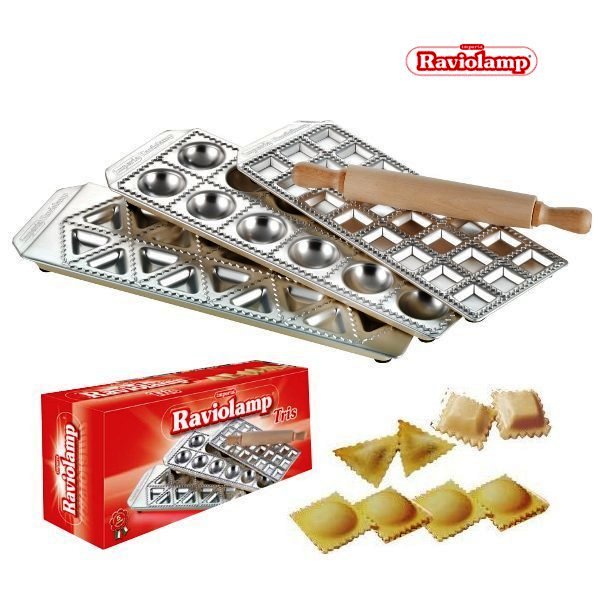 Formy do pierogów Tris - zestaw klasycznych form, umożliwiający szybkie wykonanie atrakcyjnych pierogów, ravioli oraz pierożków tortellini i uszek. Idealny w codziennym użytkowaniu, gdy potrzebujesz minimalnie zróżnicować lub urozmaicić serwowane dania. Każdą forma formujesz jednocześnie jedną porcję wybranych pierożków. Dzięki odpowiednim profilom i pojemnościom formujących zagłębień, pierogi otrzymują miękkie, łagodne kształty. W pudełku znajduje się także wałek do formowania i rozcinania pierogów oraz instrukcja z przepisem na ciasto i typowe włoskie nadzienia. Forma posiada silikonowe nóżki uniemożliwiające jej przesunięcia po blacie kuchennym w czasie pracy.