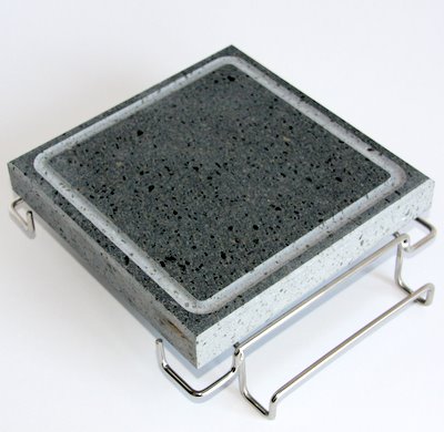 Kamień do pieczenia - naturalny, wulkaniczny kamień do smażenia i pieczenia większości spożywanych przez nas potraw. Ta "naturalna patelnia" pozwala na przyrządzanie zdrowych, dietetycznych potraw, korzystając z różnych źródeł energii. Do kamienia dołączony jest nierdzewny stelaż z drutu, który może być wykorzystany jako uchwyt do rozgrzanego kamienia, ale także jako swego rodzaju ruszt na którym ustawiamy kamień do pieczenia. W pudełku umieszczone zostały także podstawowe informacje użytkowe i pielęgnacyjne. Smażenie na kamieniach wulkanicznych, kumulujacych w sobie na długo zasoby ciepła, jest jedną z najbardziej naturalnych metod. Nie trzeba używać żadnych tłuszczów, tym samym potrawy zachowują wszystkie swoje naturane składniki odżywcze.