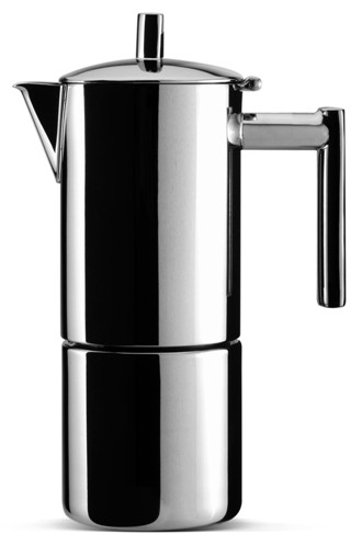 Kawiarka - zaparzacz do kawy na 6 filiżanek espresso, oryginalny, nowoczesny, w klimatach skandynawskiego wzornictwa, wykonany w tchnologii "hollow", o perfekcyjnie wykończonym korpusie z wygodnym dzióbkiem do nalewania kawy i monolitycznie złaczonymi uchwytami. Kawiarka do użytkowania na każdej kuchni. Same plusy, minusów brak!
