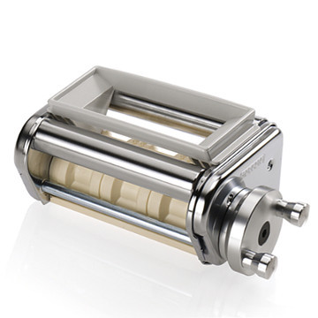 Maszynka do ravioli - przystawka do zestawów z nowej linii 3 Facile: Pasta Mixer, Pasta Fresca i Pasta & Pizza. Pomaga wykonać maleńkie, pracochłonne pierożki ravioli. Do przystawki dołączony jest specjalny zasobnik na farsz i specjalna łyżeczka, szpatułka do nakładania i rozdzielania farszu.