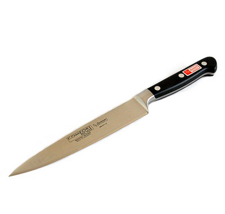 Profesjonalny nóż kuty do filetowania o długości ostrza 18cm i cienkim, sprężystym ostrzu, kutym z jednego kawałka specjalnej stali chromowo-molibdenowo-wanadowej. Laserowo kontrolowany kształt noża, zapewnia jego ergonomikę i doskonałe wyważenie. Trwały, solidnie wykonany i ręcznie, porządnie naostrzony. Rączki nitowane z polimeru nowej generacji POM, zapewniające swoim kształtem i wykończeniem wyjatkowy komfort użytkowy. Odporne na niszczące działanie czynników mechanicznych, termicznych i chemicznych. Bezpieczne dla człowieka i w kontakcie z żywnością. Comfort line to linia niemieckich noży sprawdzona w każdej kuchni, to profesjonalny komfort.