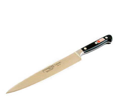 Rączki nitowane z polimeru nowej generacji POM, zapewniające swoim kształtem i wykończeniem wyjatkowy komfort użytkowy. Odporne na niszczące działanie czynników mechanicznych, termicznych i chemicznych. Bezpieczne dla człowieka i w kontakcie z żywnością. Comfort line to linia noży sprawdzona w każdej kuchni!