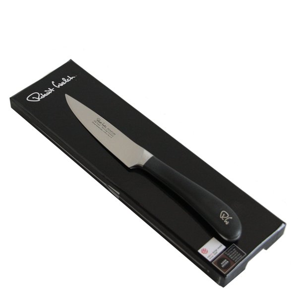 Nóż kuchenny Jarzyniak, przeznaczony do obierania i krojenia owoców i warzyw o długości ostrza 10cm - nóż należący do prestiżowej serii "Signature V", wykonanej z wysokiej jakości kutej stali molibdenowo-wanadowej z wykorzystaniem zaawansowanej technologii, gwarantującej najwyższą ostrość i odporność na szybkie tępinie ostrza. Nóż znakomity technicznie, jest także wyjątkowy designersko - to właśnie ta seria noży została nagrodzona w ostatnich kilku latach najważniejszymi nagrodami międzynarodowymi, łącznie z ostatnią iF - Produkt Roku 2010. Produkt z gwarancją Lifetime i znakomicie opakowany w designerkie pudełko Giftbox.