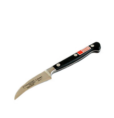 Profesjonalny nożyk kuchenny kuty do krojenia i obierania warzyw i owoców o długości ostrza 7cm. Nóż kuty z jednego kawałka specjalnej stali chromowo-molibdenowo-wanadowej, wyposażony we wspomagający krojenie kształt ostrza o laserowo kontrolowanym kształcie, zapewniającym jego ergonomikę i doskonałe wyważenie. Nóż trwały, solidnie wykonany i ręcznie, porządnie naostrzony.