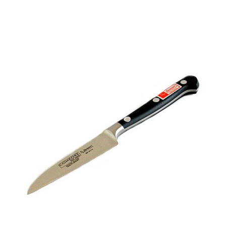 Profesjonalny nożyk kuchenny kuty do krojenia i obierania warzyw i owoców o długości ostrza 9cm. Nożyk kuty z jednego kawałka stali chromowo-molibdenowo-wanadowej o l aserowo kontrolowanym kształcie, zapewniającym jego ergonomikę i doskonałe wyważenie. Nóż bardzotrwały, solidnie wykonany i ręcznie, porządnie naostrzony. Nitowane rączki z polimeru nowej generacji POM, zapewniają swoim kształtem i wykończeniem wyjątkowy komfort użytkowy i odporność na niszczące działanie czynników mechanicznych, termicznych i chemicznych. Bezpieczne dla człowieka i w kontakcie z żywnością. Comfort line to linia noży sprawdzona w każdej kuchni!