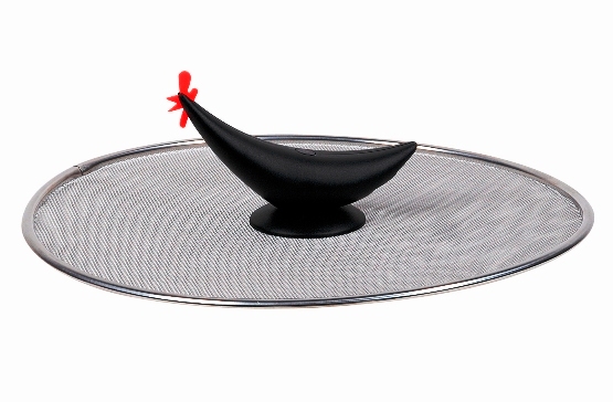 Osłona nierdzewna przeciwrozpryskowa - osłona chroniąca kuchnie przed niepożądanymi rozpryskami w czasie smażenia o średnicy 28cm wykonana ze stali nierdzewnej INOX 18/10 i wyposażona w designerski uchwyt.