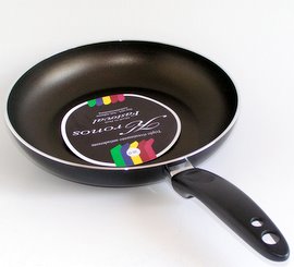 Patelnia głęboka - korpus o grubości 4mm, pokryty ptrójną, grubą warstwą PTFE. Klasyczna linia bardzo dobrych, tanich patelń produkowanych z powodzeniem od wielu lat we Włoszech. Solidny, gruby korpus i trwała, nieprzywierająca powłoka.