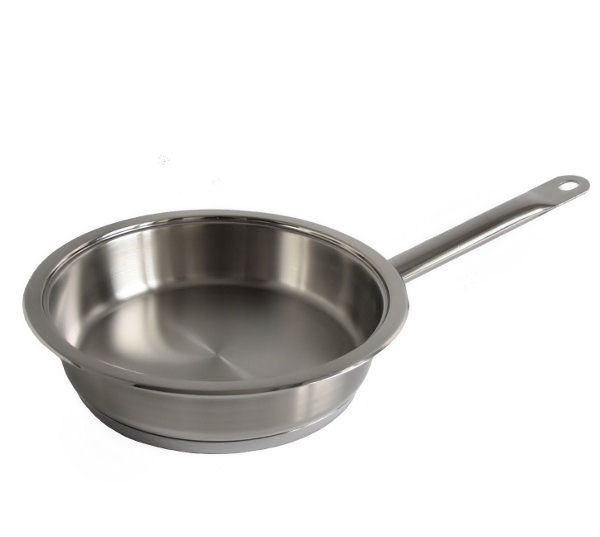 Patelnia "Professional" - wysokiej klasy produkt o grubym 11,6mm dnie wielowarstwowym, nadający się do smażenia na  wszystkich rodzajach kuchni, również i płytach indukcyjnych. Wykonana z solidnej stali kwasoodpornej o grubości 1mm, patelnia posiada także masywną i wygodną rączkę. Markowy produkt firmy Inoxpran dostepny jest także w wersji z utrzymana w tym samym stylu pokrywą.