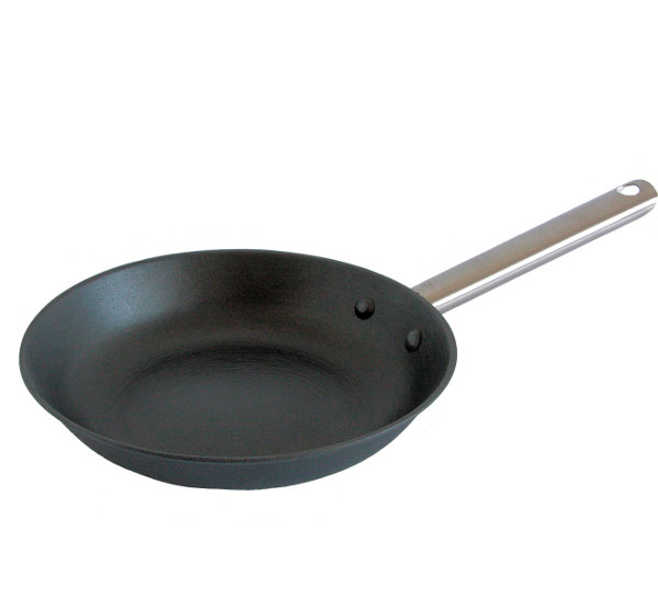 Patelnia tytanowa - żeliwna, profesjonalna patelnia z mocną, trwałą powłoką tytanową. Patelnia posiada mocno przynitowaną rączkę ze stali nierdzewnej i płaskie dno, zalecane dla płyt kuchennych witroceramicznych. Wnętrze patelni, o specjalnie uformowanej fakturze powierzchni, pokryte jest wielowarstwową, odporną na wszelkiego typu zarysowania powłoką nieprzywierającą, wzmacnianą tytanem. Patelnia wolna od PFOA i metali ciężkich - smażysz bezpiecznie!