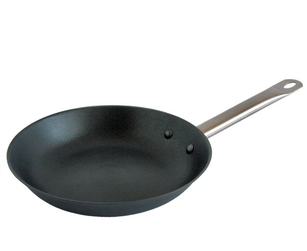 Patelnia tytanowa - profesjonalna, żeliwna patelnia z mocną, trwałą powłoką wzmacnianą tytanem. Patelnia posiada nitowaną rączkę ze stali nierdzewnej i płaskie dno, zalecane zwłaszcza dla płyt kuchennych witroceramicznych. Wnętrze patelni, o specjalnie uformowanej fakturze powierzchni, pokryte jest wielowarstwową, odporną na wszelkiego typu zarysowania powłoką nieprzywierającą, wzmacnianą tytanem. Powłoki patelni nie emitują PFOA i wolne są od metali ciężkich - smażysz bezpiecznie!