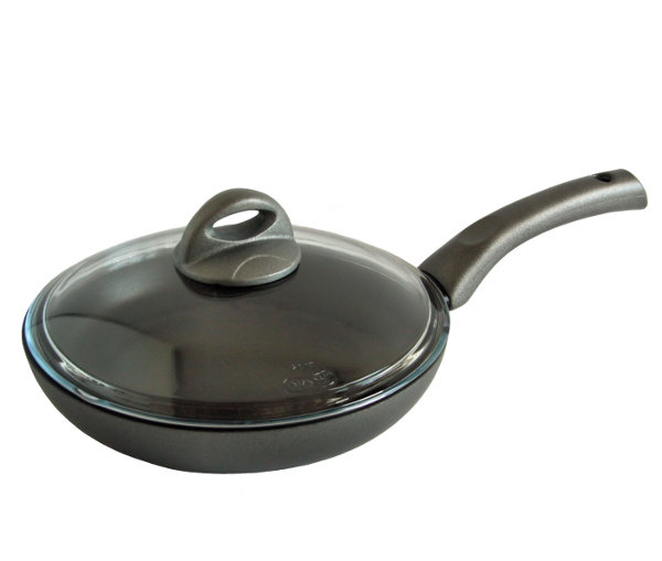 Patelnia teflonowa uniwersalna - z serii Platino, to elegancka patelnia z solidnym, grubym korpusem o ściankach 6mm i grubym dnie. Patelnie pokryte są jedną ze sprawdzonych pod względem jakości i trwałości powłok, jaką jest Teflon® Platinum. Na zewnątrz korpus patelni i rączki utrzymane są w srebrnym kolorze, skontrastowanym z czanymi powłokami teflonowymi wnętrza i estetycznymi dodatkami typu logo. Patelnia posiada stabilną, designerską rączkę, w którą zaopatrzone zostały także żaroodporne pokrywy. Linia Platino - to patelnie eleganckie i sprawdzone pod względem jakości i trwałości. Patelnia pakowana jest w tekstylną torbę z nadrukowanym logo. Patelnia oferowana jest z żaroodporną pokrywą szkłaną PYREX®, która została wyposażona w designerki uchwyt, utrzymany w stylistyce i kolorystyce linii Palatino.