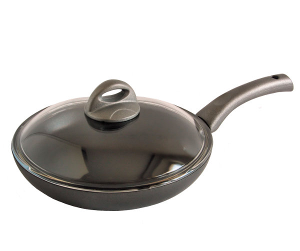 Patelnia teflonowa uniwersalna - z serii Platino, to elegancka patelnia z solidnym, grubym korpusem o ściankach 6mm i grubym dnie. Patelnia pokryta jest jedną ze sprawdzonych pod względem jakości i trwałości powłok, jaką jest Teflon® Platinum. Na zewnątrz korpus patelni i rączki utrzymane są w srebrnym kolorze, skontrastowanym z czanymi powłokami teflonowymi wnętrza i estetycznymi dodatkami typu logo. Patelnia posiada stabilną, designerską rączkę, w którą zaopatrzone zostały także żaroodporne pokrywy. Linia Platino - to patelnie eleganckie i sprawdzone pod względem jakości i trwałości. Patelnia pakowana jest w tekstylną torbę z nadrukowanym logo. Patelnia oferowana jest z żaroodporną pokrywą szkłaną PYREX®, która została wyposażona w designerki uchwyt, utrzymany w stylistyce i kolorystyce linii Palatino