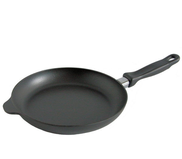 Patelnia żeliwna emaliowana - ciężka, ważąca ok.1,5kg patelnia z rączką z bakelitu i płaskim dnem. Przeznaczona do smażenia na wszystkich kuchniach, zwłaszcza witroceramicznych i także indukcyjnych.