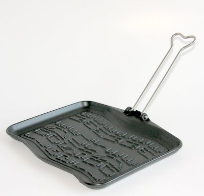Jest to patelnia wyjątkowa - z rusztem minigrilla wykonanym w formie napisów:"Love me, Grill me". Również uchwyt patelni zakończony jest serduszkiem. Słowem, idealny prezent walentykowy, ślubny lub rocznicowy dla małżeństw. Stabilny, nierdzewny uchwyt wykonany z drutu jest ruchomy i w ten sposób patelnia zajmuje niewiele miejsca w kuchennych szafkach, a ponadto metalowe, ruchome ucho pozwala także na całkowite wstawianie patelni do piekarnika. Nie ulegnie stopieniu i nie przeszkadza w umieszczeniu patelni w piekarniku. W korpusie patelni wykonano także wygodny dzióbek do wylewania gorącego tłuszczu. Praktyczne, trwałe, zaskakujące i tanie!