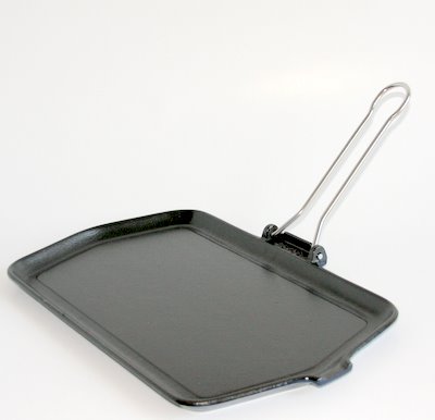 Patelnia żeliwna "Marinella" - ciężka uniwersalna patelnia z żeliwa emaliowanego, umożliwiająca przygotowanie zdrowych, dietetycznych posiłków - zwłaszcza do smażenia i pieczenia ryb. W pudełku zawarte są również podstawowe informacje, dotyczące użytkowania patelni i zalecenia pielęgnacyjne. Patelnia posiada gładką powierzchnię roboczą, wokół której pozostawiony jest jednak pasek marginesu na gromadzący sie tłuszcz w czasie smażenia. Wyposażona w stabilny, nierdzewny uchwyt wykonany z drutu, który w każdej chwili możesz złożyć i w ten sposób patelnia zajmie niewiele miejsca w kuchennych szafkach, a ponadto metalowe, ruchome ucho pozwala także na całkowite wstawianie patelni do piekarnika. Nie ulegnie stopieniu i nie przeszkadza w umieszczeniu patelni w piekarniku. W korpusie patelni wykonano także wygodny dzióbek do wylewania gorącego tłuszczu. Praktyczne, zdrowe i trwałe!