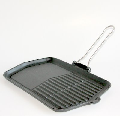 Patelnia została wyposażona w nierdzewne, stabilne ucho wykonane z drutu, co umożliwia jego składanie i w ten sposób patelnia nie zagraca nam szafek, a ponadto metalowe ucho umożliwia także całkowite wstawianie patelni do piekarnika. W korpusie patelni wykonano także wygodny dzióbek do wylewania gorącego tłuszczu.