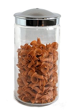 Słoik kuchenny - szklane naczynie o pojemności 1350ml do przechowywania makaronów i innych produktów spożywczych. Słój posiada elegancką, designerską pokrywę z hermetycznym zamknięciem wykonaną w chromie