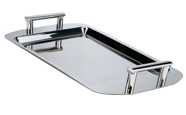 Taca nierdzewna - elegacka, solidnie wykonana z grubej stali polerowanej taca, wyposażona w mocne, designerskie uchwyty, o perfekcyjnym wykończeniu detalu i nowoczesnym rysunku. Wymiary tacy: 25x40cm.