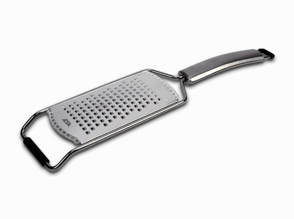 Tarka kuchenna płaska z uchwytem - tarka ze średnimi ząbkami do ścierania cebuli oraz różnego typu twardych serów, tarka z ząbkami wycinanymi laserowo i o ostrym profilu poszczególnych ząbków. Nierdzewne, kwasoodporne ostrze razem z nierdzewną rączką, zaopatrzoną w silikonowe nakładki, tworzy stabilną kontrukcję i jest niezastąpione w każdej profesjonalnej i domowej kuchni. Wymiary tarki: 31cm x 7cm.