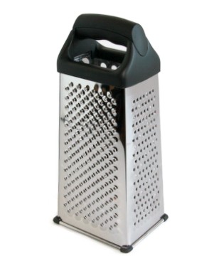 Tarka nierdzewna Uniwersalna Duża - o wysokości 24cm. Każdy z czterech boków wyposażony został odmienne ząbki, gdzie oprócz typowych zębów do ścierania ziemniaków na placki są także duże oczka do tarcia warzyw i oczka okragłe małe oraz mini-szatkownik. Tarka jest wykonana z nierdzewnej stali kwasoodpornej o perfekcyjnym wykończeniu i trwałej, estetycznej rączce, jest narzędziem ostrym, skuteczym i w pełni ergonomiczym.
